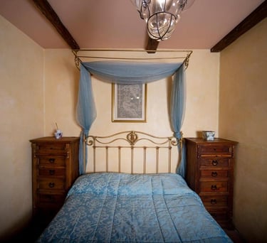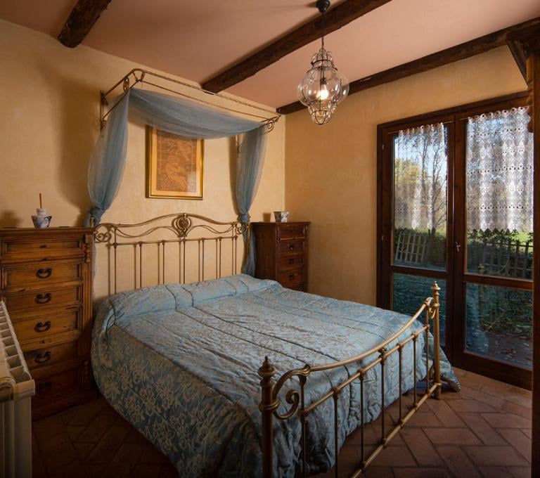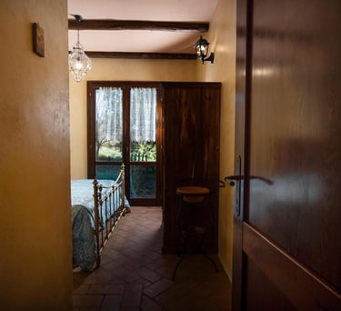 Camera accogliente con letto matrimoniale, perfetta per chi cerca un ambiente rilassante, con tutti i comfort moderni a disposizione. Gli ospiti possono godere di una vista mozzafiato dalla finestra mentre si godono un soggiorno tranquillo e rigenerante.