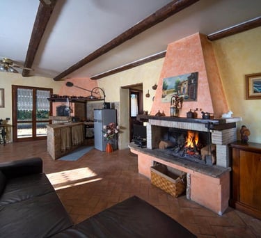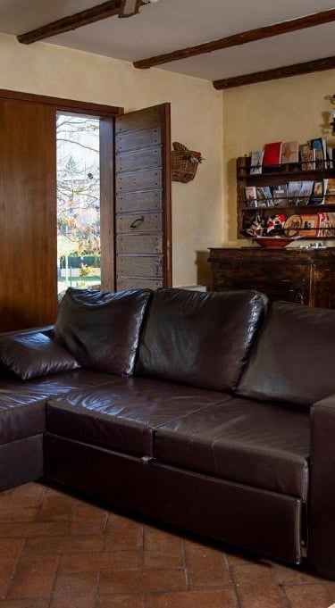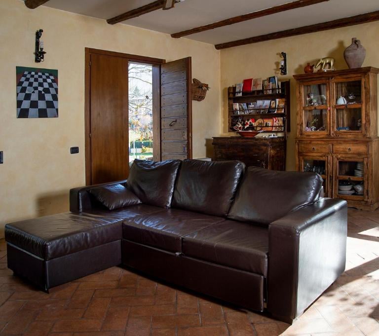 Ampia salotto con divano letto, ideale per ospitare comodamente amici e familiari, rendendo ogni incontro speciale e accogliente. Questo spazio versatile può essere utilizzato per rilassarsi dopo una lunga giornata, guardare film insieme o semplicemente godere di una buona conversazione.